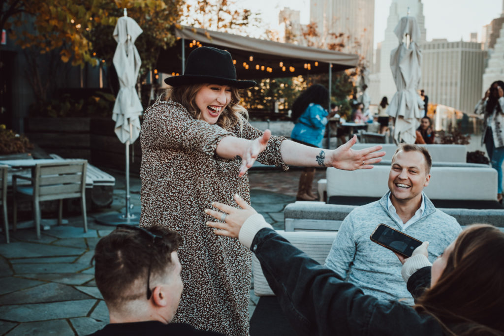 We asked all of our friends to get a rapid test prior to meeting so we knew we were in a safe environment. If we flew, we flew Delta because we know they take social distance precautions and limit inflight interactions. We were engaged on a rooftop, purposely as far from others as we could get. You can be romantic and have fun, all while staying safe.